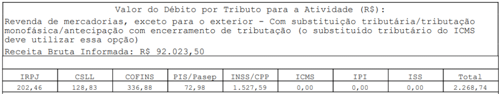 Desta forma realizava o pagamento de PIS E COFINS a maior dentro do PGDAS conforme abaixo: